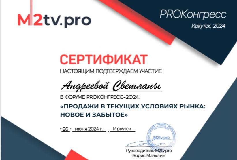 Хочу выразить огромную благодарность риэлтору Андреевой Светлане. Очень грамотный специалист в своём деле! Компетентна на все 100!