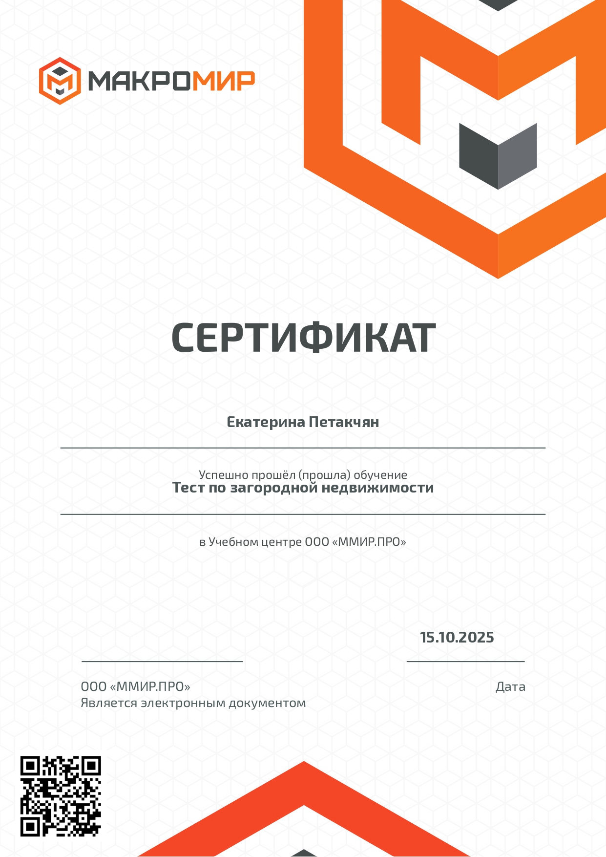 Хочу выразить свое восхищение и благодарность риэлтору Екатерине Петакчян. Екатерина-высококвалифицированный специалист, талантливый риэлтор и прекрасный человек. С 2013 года моя семья пользуется риэлторскими услугами только Екатерины Петакчан. Конечно, я рекомендую ее моим друзьям, которые также довольны результатами сделок по продаже квартир. Екатерина очень тщательно работает с нашими запросами и обязательно подберет вариант, максимально удовлетворяющий нашим потребностям. Через Екатерину я, да и мои друзья, неоднократно сдавали квартиры в аренду. Невыполнимых задач для Екатерины не существует. Сроки выполнения от заявки до сделки кратчайшие. Особо хочу отметить высокие человеческие качества Екатерины. Она всегда на связи, даст квалифицированную консультацию, окажет реальную помощь. С ней всегда приятно общаться. С большим удовольствием рекомендую Екатерину, первоклассный риэлтор!