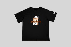Для тех, кто хулиган в душе. Плотная чёрная ОВЕРСАЙЗ футболка с надписью "I AM REAL TOP." и "100% эксперт" на груди. Надписи на груди и логотип на рукаве выполнены методом машинной вышивки.